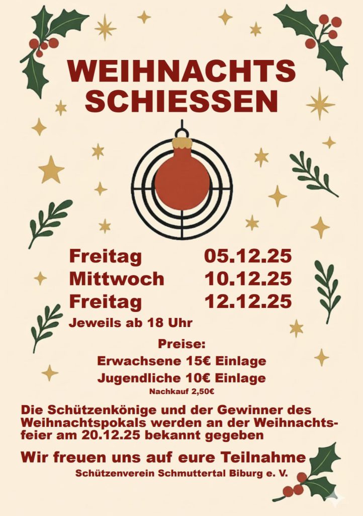 Es wird weihnachtlich bei uns im Schützenheim, kommt vorbei!